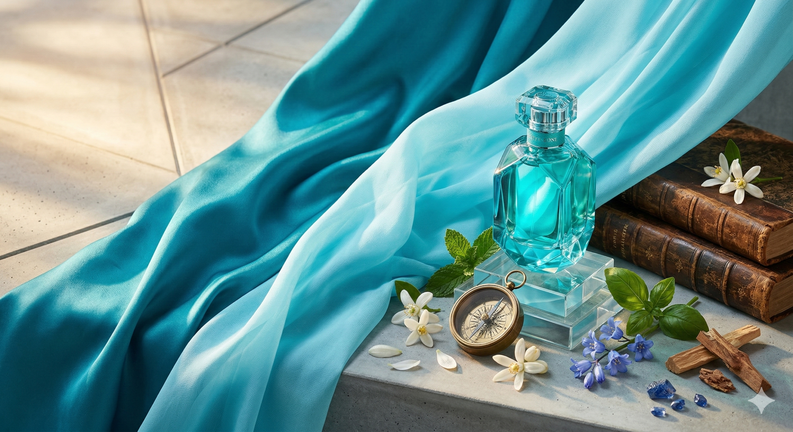 香水においても、ボトルのブルーグリーンは「エッジの効いたエレガンス」そのものです。深みのあるパチュリの陰影、透明感のあるマリンの輝き、あるいは高貴なフローラルの余韻。これらが組み合わさることで、ブルーグリーン特有の「ミステリアスで洗練されたオーラ」が形作られるのです。